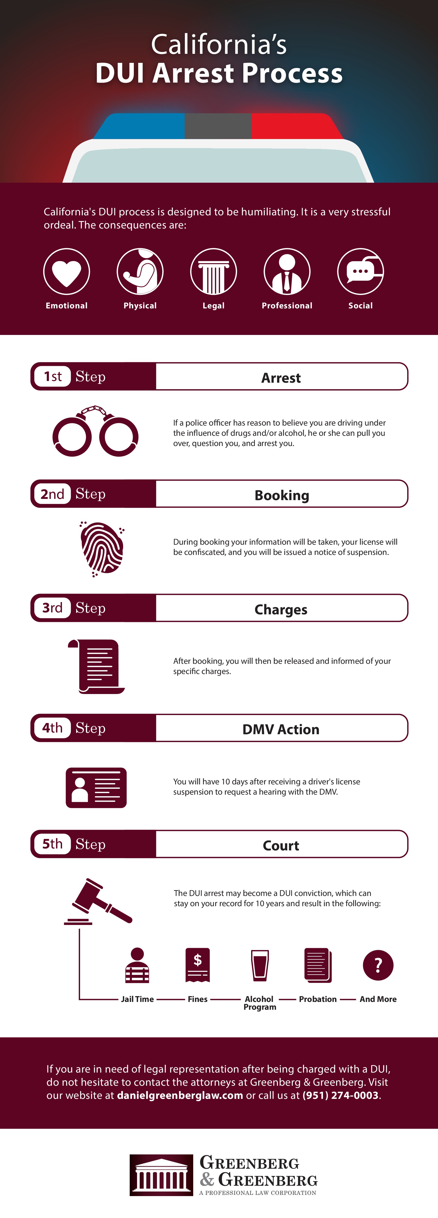 While a minority of DUI defendants are chronic, repeat offenders, and alcoholics, most people arrested for a DUI are ordinary people who made a mistake. Fortunately, with the help of the Riverside, California, DUI attorneys at Greenberg, Greenberg & Kenyon, first-time offenders can sometimes have their charges reduced or dropped. Few people ever expect to get arrested for drunk driving, so they often have a number of questions about what will happen next. Right now, it is important to arm yourself with all the information you can find.